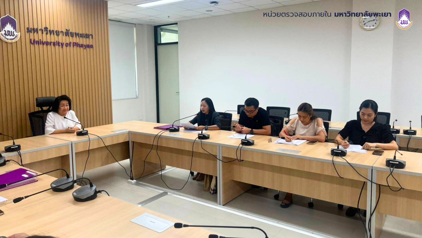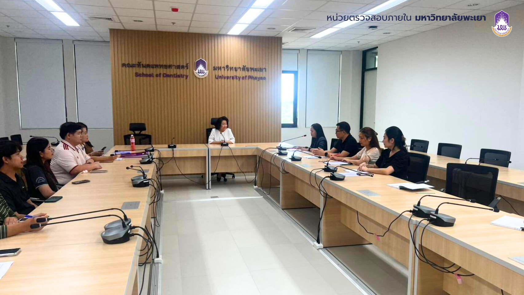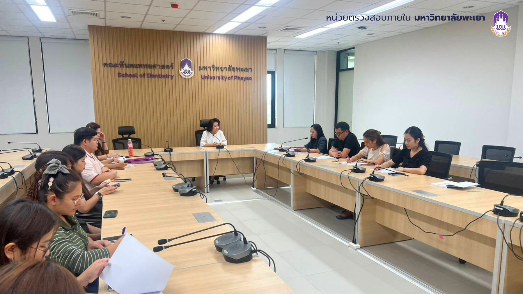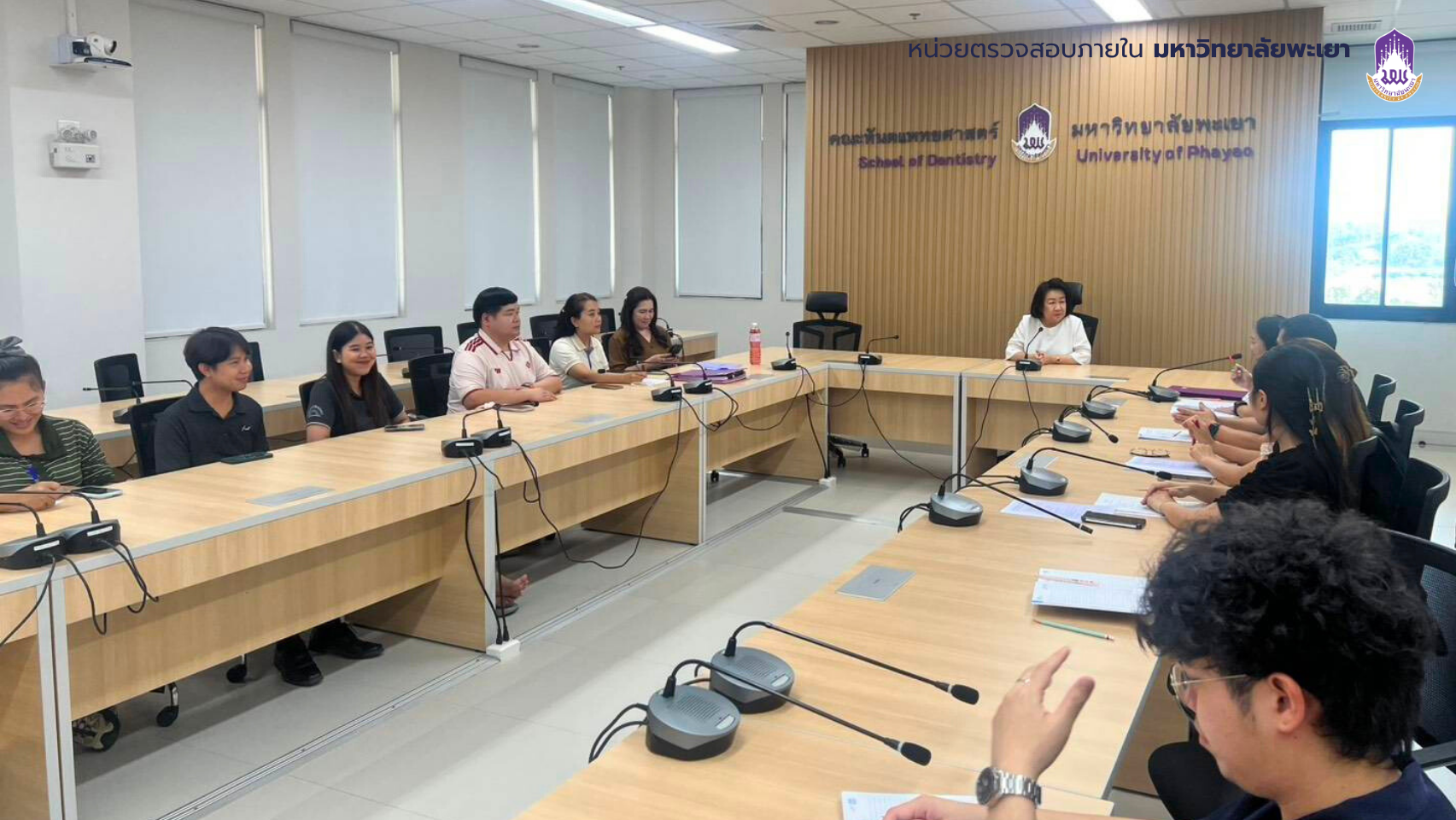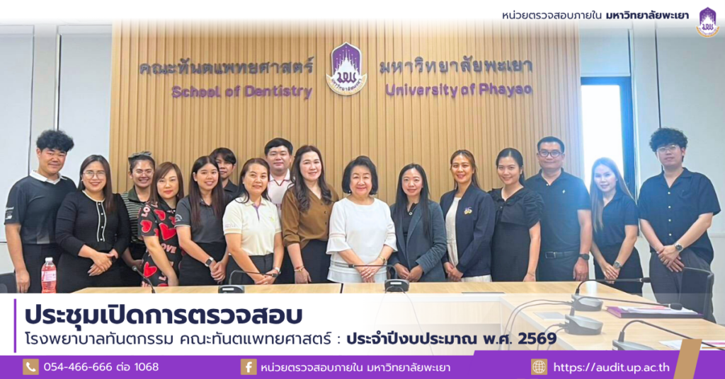 บุคลากรหน่วยตรวจสอบภายในประชุมร่วมกับศาสตราจารย์ ทันตแพทย์หญิง ดร.พัชราวรรณ ศรีศิลปนันทน์ คณบดีคณะทันตแพทยศาสตร์ และรักษาการแทนผู้อำนวยการโรงพยาบาลทันตกรรม หัวหน้าสำนักงานคณะ รักษาการหัวหน้าสำนักงานโรงพยาบาลทันตกรรม และบุคลากรที่เกี่ยวข้อง เพื่อแจ้งวัตถุประสงค์และขอบเขตในการตรวจสอบตามแผนการตรวจสอบภายใน ประจำปีงบประมาณ 2569 เมื่อวันจันทร์ ที่ 16 มีนาคม 2569 เวลา 15.00 น. ณ ห้องประชุมคณะทันตแพทยศาสตร์ มหาวิทยาลัยพะเยา